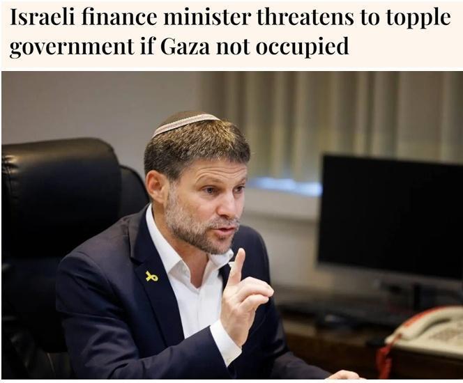 以色列议会总共是120个席位,内塔尼亚胡的执政联盟要执政,最少要确保有61个席位。本-格维尔的政党掌握了6个席位、斯莫特里赫的政党掌握7个席位,本-格维尔退出之后,执政联盟在议会还有62个席位,斯莫特里赫如果再退出7个席位,执政联盟肯定就不是多数了。斯莫特里赫利用此向内塔尼亚胡施加压力。如果他退出了,内塔尼亚胡的执政地位就很脆弱了。但因为斯莫特里赫和本-格维尔跟内塔尼亚胡还是有共同利益的,所以他们退出之后内塔尼亚胡可以依靠别的党来支持他,这并不意味着,内阁立刻就会垮台。——————————————
